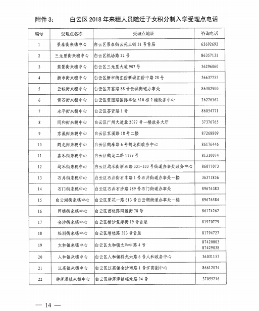 白云区2018年来穗人员随迁子女积分制入学工作时间安排表